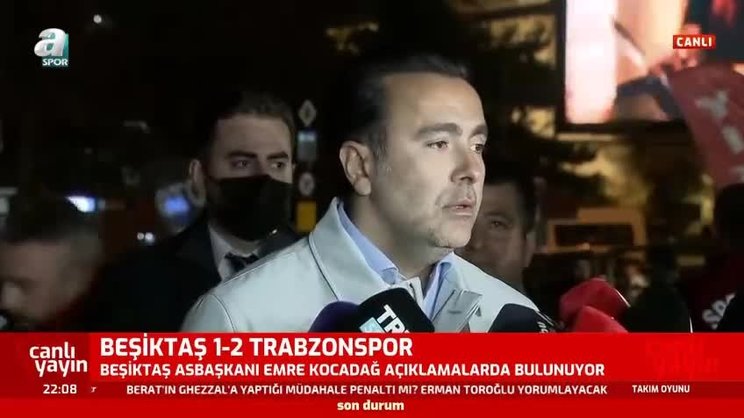 Süper Lig'in 12. haftasında Beşiktaş, deplasmanda Trabzonspor'a 2-1 mağlup oldu. Maçın ardından siyah-beyazlıların Asbaşkanı Emre Kocadağ açıklamalarda bulundu. Kocadağ, "Pozisyonlar var, penaltı pozisyonları var. 8 yıldır yöneticilik yapıyorum. Futbol takımından sorumlu olarak birçok şeyin içerisinde olduk. Biz hakemlerin bu sene başladığından beri vücut dillerinden, yapmak istediklerini görüyoruz. Bir şekilde Beşiktaş’ın önünü kesmek için bir şeyler yapıldığını görebiliyoruz. Bizim de iyi oyunu daha fazla oynamamız lazım. Bu bir bahane olmayacak. Hakemler de bir şekilde kendilerini geliştirecek diye umuyorum." ifadelerini kullandı.