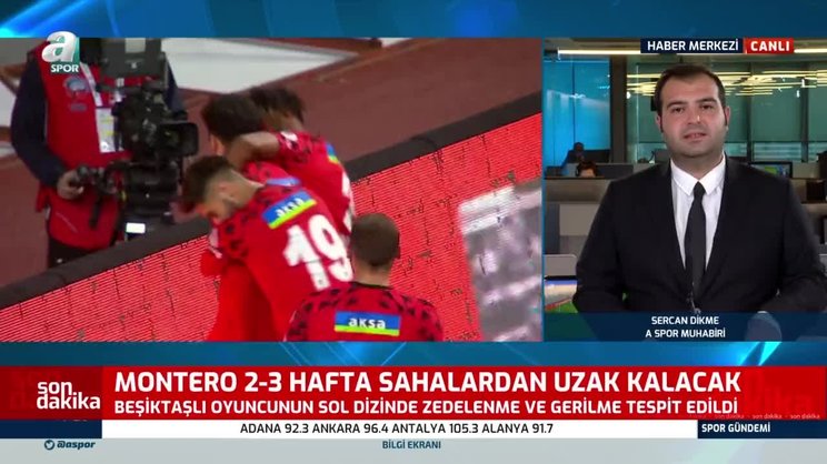 Süper Lig'in 25. haftasında Gençlerbirliği'ne konuk olacak Beşiktaş'ta yıldız isimden kötü haber geldi. Siyah-beyazlılarda Montero'nun 2-3 hafta sahalardan uzak kalacağı öğrenildi. Son gelişmeleri A Spor muhabiri Sercan Dikme aktardı. | Son dakika Beşiktaş haberleri (Bjk spor haberi)