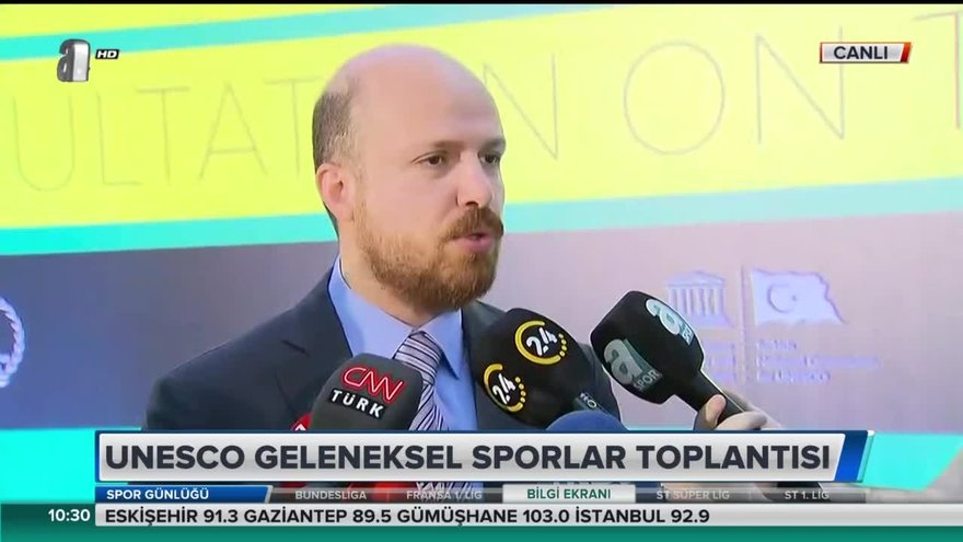 Dünya Etnospor Konferedasyonu Başkanı Bilal Erdoğan, Unesco Geleneksel Sporlar Toplantısı'nda önemli açıklamalarda bulundu. Türkiye'nin her alanda güçlü olduğunu belirten Erdoğan; "Batı hegemonyasında kültür tek renkliliğe doğru gidiyor. Siyasi ve ekonomik olarak olabilir, tartışılabilir ama kültürel olarak tek kutupluluğa tek renkliliğe doğru gitmesi kabul edilir bir şey değildir. Dünya Etnospor Konferedasyonu'nun temel felsefesi dünyanın zenginliği bir renklilik olarak kabul etmek, kültürlerin birbirlerine saygısını ve dünyanın barışı adına bir altyapı olarak görmek.