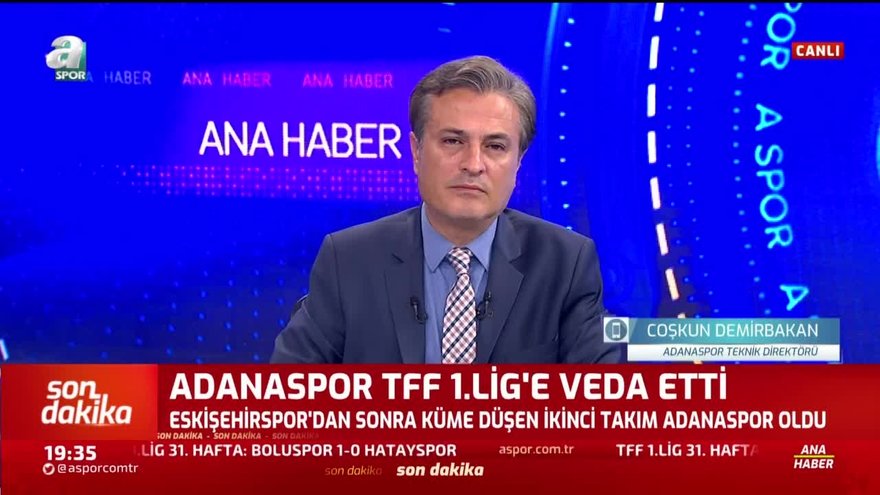 TFF 1. Lig'de küme düşen Adanaspor'da teknik direktör Coşkun Demirbakan, A Spor'a özel açıklamalarda bulundu. Demirbakan, "Camia bana çok güveniyordu. Bir şeyler yapamadığım için üzgünüm." dedi.