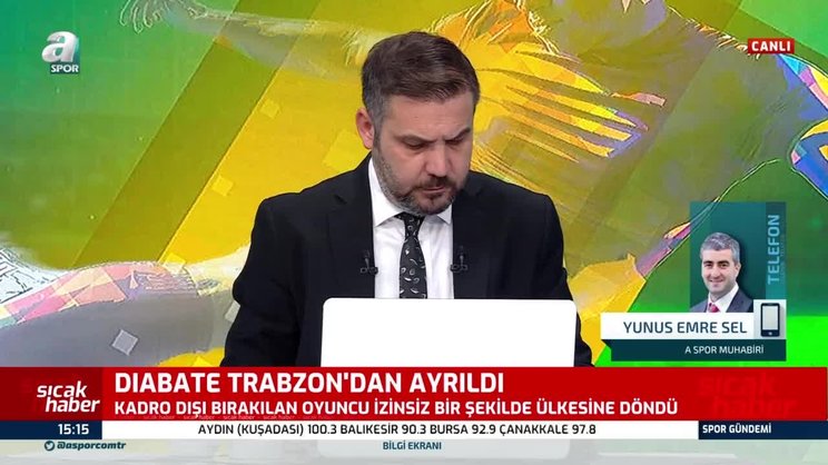 Trabzonspor'da forma giyen ve kadro dışı bırakılan Diabate, izinsiz bir şekilde Trabzon'dan ayrılarak ülkesine döndü. Malili futbolcu hakkında noter tespiti yapıldı. Konuyla ilgili detayları A Spor muhabiri Yunus Emre Sel aktardı.