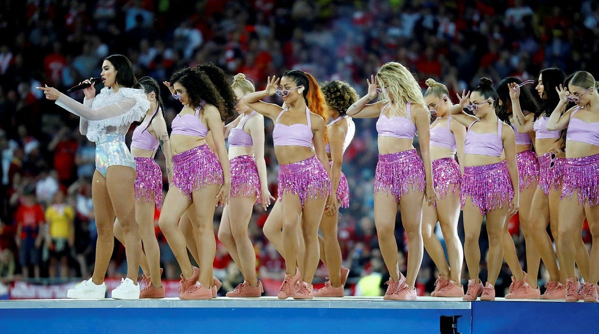 Real Madrid'in Liverpool'u 3-1 mağlup ederek 13. kez kupayı kaldırdığı Şampiyonlar Ligi finali öncesi dünyaca ünlü yıldız Dua Lipa sahne aldı. 22 yaşındaki ünlü şarkıcı, Kiev'de düzenlenen Şampiyonlar Ligi öncesinde verdiği konserle geceye damga vurdu. Lipa, günler öncesinden hazırlık yaptığı sahne şovuyla izleyenleri kendine hayran bıraktı.