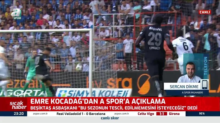 Beşiktaş Asbaşkanı Emre Kocadağ, A Spor muhabiri Sercan Dikme'ye çok özel açıklamalarda bulundu. A Spor'da yayınlanan 90'a programına telefonla bağlanan Sercan Dikme, Kocadağ ile yaptığı görüşmenin detaylarını paylaştı ve Kocadağ'ın "Lig bittiğinde, mevcut şekilde tescil edilmemesini isteyeceğiz. Bununla ilgili resmi başvuruda bulunacağız" ifadelerini kullandığını söyledi.