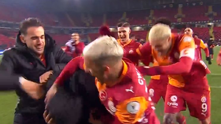 Galatasaray, Türkcell Süper Kupa yarı final mücadelesinde Trabzonspor'u 4-1'lik skorla mağlup ederek finale yükseldi. Karşılaşma bitiminde sarı kırmızılı futbolcuların Eren Elmalı'ya takıldığı anlar izleyenleri gülümsetti.