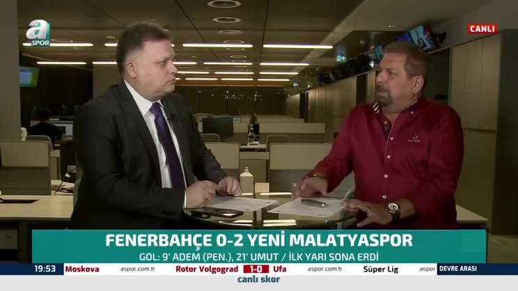 Fenerbahçe - Yeni Malatyaspor maçının ilk yarısının ardından değerlendirmelerde bulunan A Spor yorumcusu Erman Toroğlu sarı-lacivertli takıma eleştirilerde bulunurken, "Fenerbahçe top oynamıyor, futbol oynamıyor." ifadelerini kullandı.