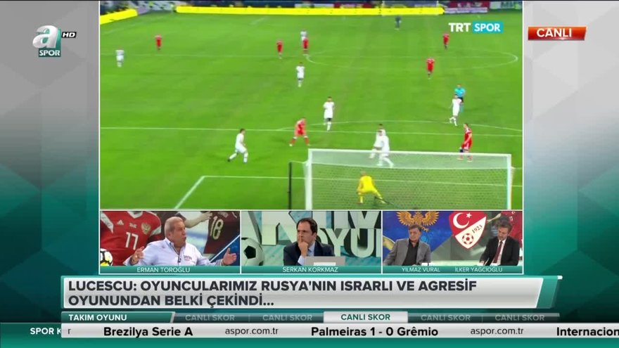 A Spor yorumcusu Erman Toroğlu, Rusya - Türkiye maçının ardından değerlendirmelerde bulundu. Toroğlu,"Lucescu bizi hıyar yerine koyuyor" yorumunu yaptı.
