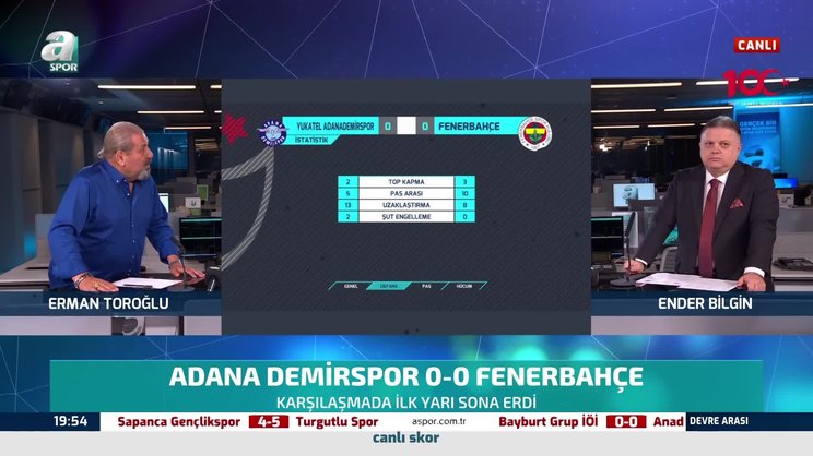 Trendyol Süper Lig'in 12. haftasında Fenerbahçe deplasmanda Adana Demirspor ile karşı karşıya gelirken Erman Toroğlu mücadelenin ilk yarısını değerlendirdi. Ünlü yorumcu ilk yarı hakkında dikkat çeken açıklamalara yer verdi. İşte o sözler...