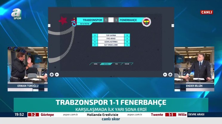 Süper Lig'in 9. haftasında Trabzonspor ile Fenerbahçe karşı karşıya gelirken, sarı-lacivertlilerin kalecisi Altay Bayındır 25. dakikada inanılmaz bir hataya imza attı. Mücadelenin devre arasında A Spor yorumcusu Erman Toroğlu değerlendirmelerde bulundu. Altay'ı eleştiren Toroğlu, "Frikik atılıyor. Kullanan isim Bakasetas. Fenerbahçe kalecisi Altay Bayındır direk boşluğu bırakıyor. Bununla birlikte panik yaptı topla içeri girdi." ifadelerini kullandı.