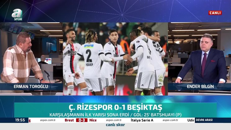 Süper Lig'in 20. haftasında Beşiktaş, deplasmanda Rizespor ile karşılaştı. Maçın devre arasında A Spor yorumcusu Erman Toroğlu değerlendirmelerde bulundu. Toroğlu, "Beşiktaş çok rahat oynuyor. Eğer 2. golü bulursa maç farka gider. Batshuayi bencillik yapmasa Emirhan ilk golünü atacak. Bencillik yapma artık." ifadelerini kullandı. | Beşiktaş haberleri (BJK spor haberi)