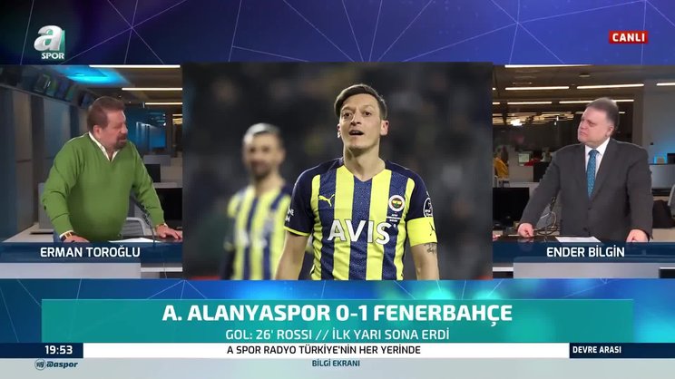 Süper Lig'in üst sıralarını ilgilendiren zorlu mücadelede Fenerbahçe deplasmanda Alanyaspor'a karşı ilk yarıyı 1-0 önde kapattı. A Spor yorumcusu Erman Toroğlu ilk yarı sonunda Mesut Özil hakkında konuştu. Toroğlu, "Mesut aldığını veremedi. Almanya'da olsa kadroya bile giremez." dedi.