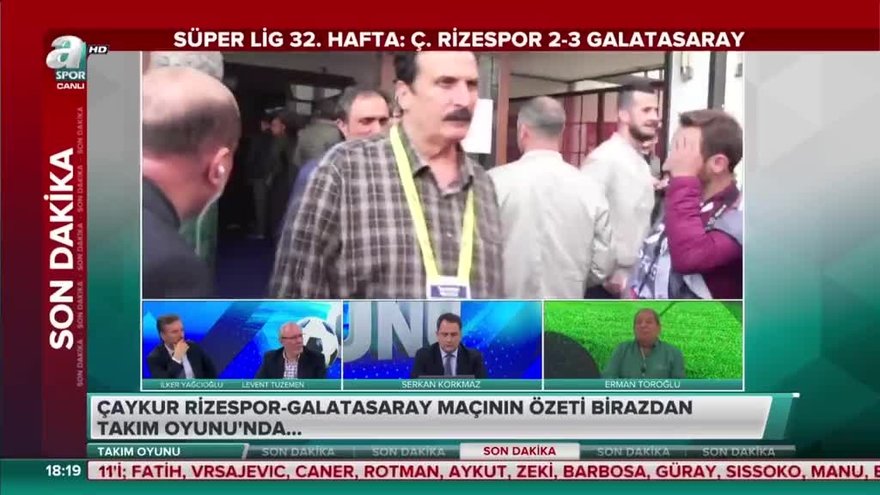 A Spor yorumcusu Erman Toroğlu, Çaykur Rizespor - Galatasaray maçının ardından Takım Oyunu programında değerlendirmelerde bulundu. Toroğlu, "Bugün bana yarın sana. Bu hakemlere hakemlik yaptırmayın. Bunlarda karakter noksanlığı var." ifadelerini kullandı.