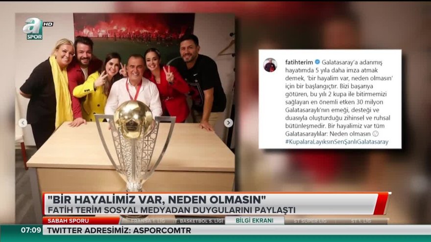 Galatasaray'ın şampiyonluk kutlamasında 5 yıllık yeni sözleşmeye imza atan Fatih Terim, duygularını sosyal medya hesabından paylaştı.