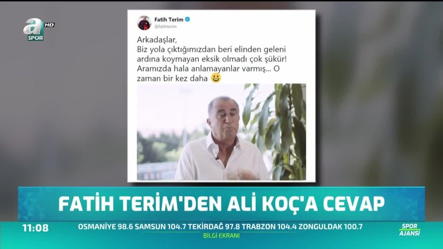 Galatasaray teknik direktörü Fatih Terim, tazminatıyla ilgili açıklamalarda bulunan Fenerbahçe başkanı Ali Koç'a sosyal medya hesabından vecap verdi.