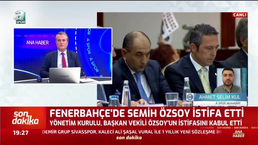 Fenerbahçe'de flaş bir gelişme yaşandı. Sarı-lacivertli kulüp, Başkan Vekili Semih Özsoy'un yönetim kurulu üyeliğinden istifa ettiğini duyurdu. Gelişmeleri A Spor muhabiri Ahmet Selim Kul aktardı. İşte detaylar...