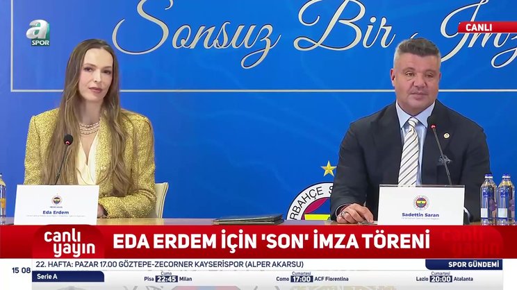 Fenerbahçe Medicana'da kaptanlık görevi üstlenen ve Türk voleybolunda sarsılmaz bir yere sahip olan milli voleybolcu Eda Erdem için Chobani Stadı'nda imza töreni gerçekleştirildi. Fenerbahçe Başkanı Sadettin Saran da Eda Erdem için düzenlenen imza törenine katılarak açıklamalarda bulundu.