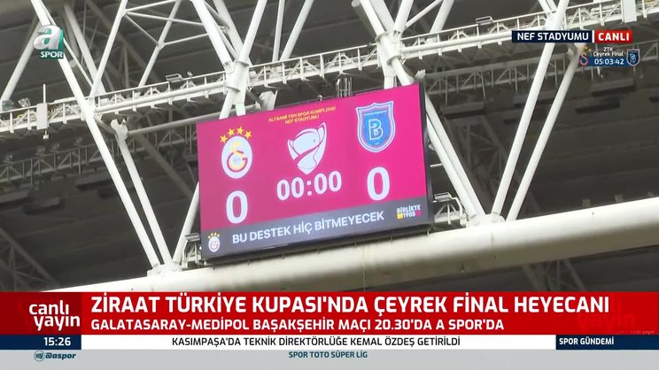 GALATASARAY - BAŞAKŞEHİR CANLI İZLE | Galatasaray ile Başakşehir, Ziraat Türkiye Kupası çeyrek final maçında kozlarını paylaşıyor. Zorlu maç 5 Nisan Çarşamba günü saat 20:30'da başlayacak. Karşılaşma A Spor'dan naklen yayınlanacak. GALATASARAY - BAŞAKŞEHİR CANLI izle...