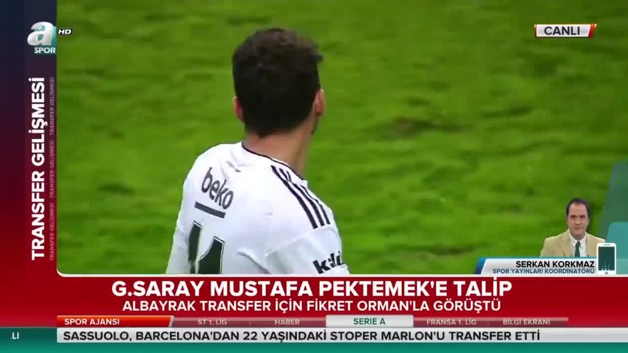 A Spor'da yayınlanan Spor Ajansı programına telefonla bağlanan A Spor Spor Yayınları Koordinatörü Serkan Korkmaz, Galatasaray'ın Beşiktaş'tan Mustafa Pektemek'e talip olduğunu açıkladı. G.Saray İkinci Başkanı Abdurrahim Albayrak bugün düzenlenen basın toplantısında Fikret Orman'la bir futbolcu konusunda görüştüklerini açıklamış ancak isim vermekten kaçınmıştı.