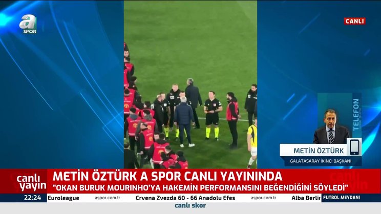 Galatasaray 2. Başkanı Metin Öztürk, Ziraat Türkiye Kupası çeyrek finalinde oynanan Fenerbahçe-Galatasaray derbisiyle ilgili A Spor'a özel açıklamalarda bulundu. Öztürk, Galatasaray Teknik Direktörü Okan Buruk ile Fenerbahçe Teknik Direktörü Jose Mourinho arasında geçen konuşmayı açıkladı.