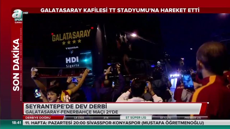Spor Toto Süper Lig'in 11. haftasında Galatasaray, bu akşam sahasında Fenerbahçe ile karşılaşacak. Saat 21.00'de başlayacak mücadeleyi Fırat Aydınus yönetecek. Sarı-kırmızılı takım, bu zorlu müsabaka öncesi Florya Metin Oktay Tesisleri'nden Türk Telekom Stadyumu'na gitmek üzere yola çıktı. Yoğun güvenlik önlemleri altında tesislerden ayrılan Galatasaray kafilesini bir grup taraftar uğurladı.