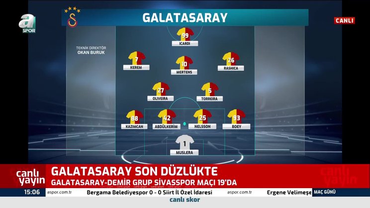 GALATASARAY - SİVASSPOR CANLI İZLE | Galatasaray ile Sivasspor, Süper Lig'in 35. haftasında kozlarını paylaşıyor. Zorlu maç 20 Mayıs Cumartesi günü saat 20:00'da başlayacak. Karşılaşma beIN SPORTS 1'den naklen yayınlanacak. GALATASARAY - SİVASSPOR CANLI izle...