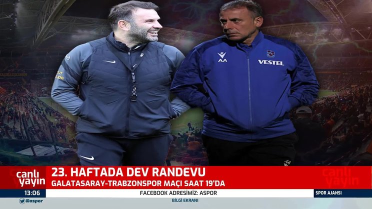 GALATASARAY - TRABZONSPOR CANLI İZLE | Galatasaray ile Trabzonspor Süper Lig'in 23. haftasında kozlarını paylaşıyor. Zorlu mücadele 5 Şubat Pazar günü saat 19:00'da Nef Stadyumu'nda başlayacak. Karşılaşma beIN SPORTS 1'den naklen yayınlanacak. GALATASARAY - TRABZONSPOR CANLI izle...