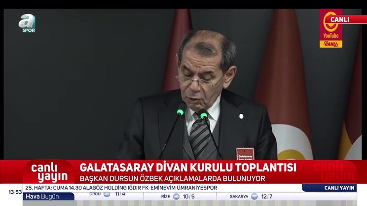 Galatasaray Başkanı Dursun Özbek, Divan Kurulu Toplantısı'nda ikas Eyüpspor ve Juventus maçları için sarı-kırmızılı taraftarlara çağrıda bulundu.