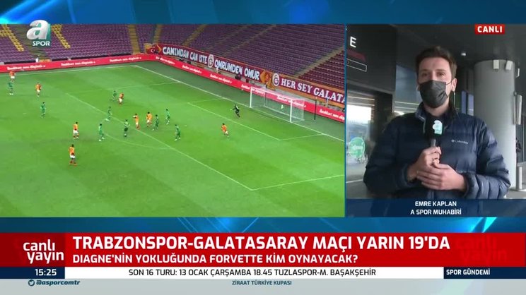 Süper Lig'in 15. haftasında Trabzonspor deplasmanına konuk olacak Galatasaray'da Mbaye Diagne, ailesinden bir kişinin corona virüsü testinin pozitif çıkması nedeniyle tedbir amaçlı kafileye alınmadı. Sarı-kırmızılılarda Senegalli golcünün yerine kimin oynayacağı merak konusu olurken, konuyla ilgili detayları A Spor muhabiri Emre Kaplan aktardı.