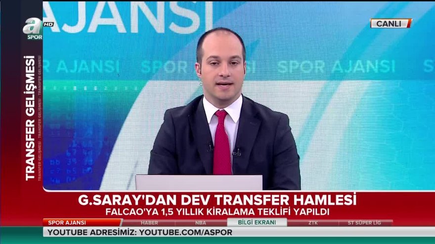 A Spor muhabiri Hakan Gündoğar, kiralama teklifi yapılan Radamel Falcao transferiyle ilgili gelişmeleri aktardı. Gündoğar, "Terim Falcao'yu istiyor ve çok ısrarcı. 4 sponsorun ortak şekilde bu transferi üstlenmesi bekleniyor. Monaco kulübü, sponsorlardan taahhüt bekliyor." dedi.