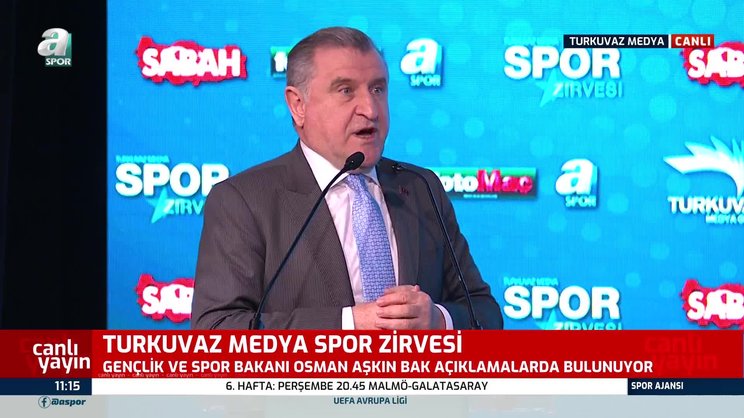Gençlik ve Spor Bakanı Dr. Osman Aşkın Bak, her yıl düzenlenen ve Süper Lig'in en iyilerinin ödüllendirileceği Turkuvaz Medya Spor Zirvesi'nde özel konuk olarak konuştu. İşte o ifadeler...