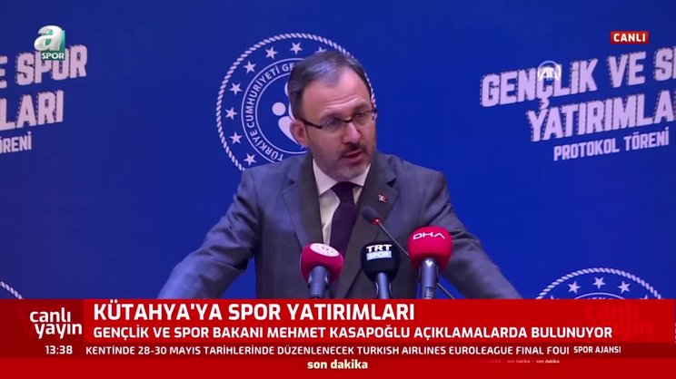 Gençlik ve Spor Bakanı Mehmet Muharrem Kasapoğlu, Kütahya'ya yapılacak spor yatırımları protokolünde açıklamalarda bulundu. Kasapoğlu, "Çalışmalarımızı elbette bugün çok önemli aşamaya getirdik. Gençlik ve spor yatırımlarında Kütahya'yı farklı bir boyuta taşıyoruz" dedi. | Son dakika spor haberleri