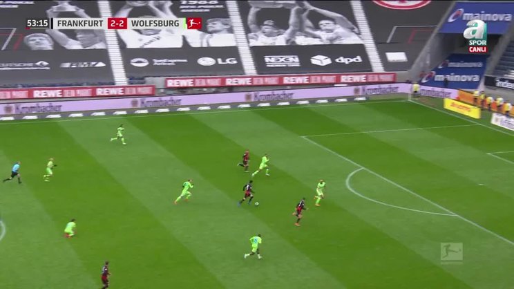 Bundesliga'nın 28. haftasında Eintracht Frankfurt, 54. dakikada Andre Silva'nın attığı golle Wolfsburg karşısında 3-2 öne geçti.