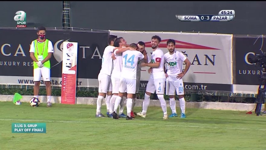 TFF 3. Lig 3. Grup play-off final maçında Pazarspor, 45+1. dakikada Mehmet Aytemiz'in attığı golle Somaspor karşısında 3-0 öne geçti.