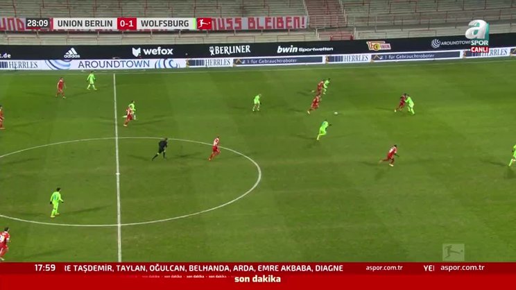 Bundesliga'nın 15. haftasında Union Berlin, 29. dakikada Sheraldo Becker'in attığı golle Wolfsburg karşısında skoru 1-1'e getirdi.