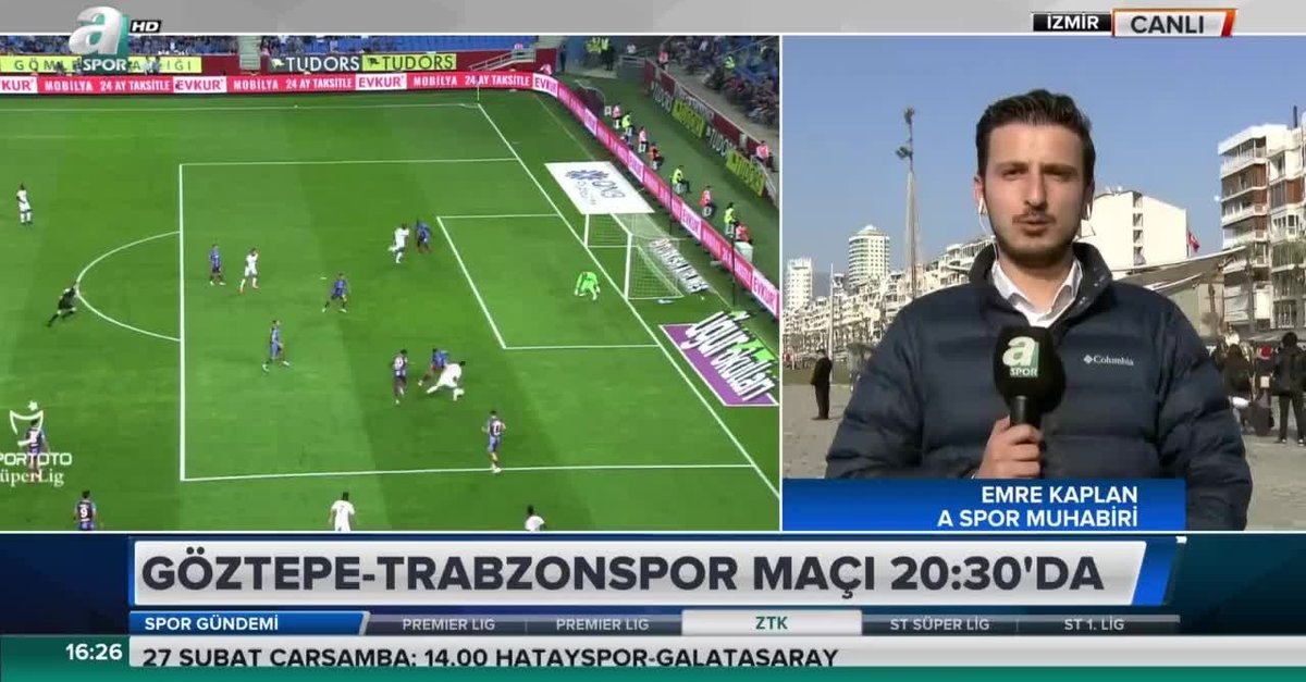 Spor Toto Süper Lig 23. hafta mücadelesinde Trabzonspor bu akşam deplasmanda Göztepe'nin konuğu olacak. Bornova Stadı'nda saat 20.30'da başlayacak zorlu mücadele öncesi son gelişmeleri A Spor muhabiri Emre Kaplan aktardı.