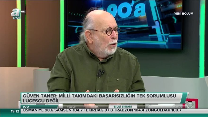 A Spor yorumcusu Güven Taner, 90'A programında değerlendirmelerde bulundu. Taner, "Milli Takım’daki başarısızlığın tek sorumlusu Lucescu değil" yorumunu yaptı.