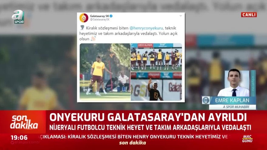 Galatasaray Kulübü, Henry Onyekuru’nun takımdan ayrıldığını duyurdu. A Spor Muhabiri Emre Kaplan, canlı yayına bağlanarak detayları aktardı.