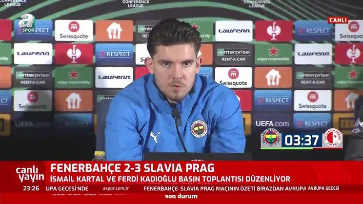 UEFA Konferans Ligi play-off mücadelesinde Fenerbahçe evinde Slavia Prag'ı ağırladı. Temsilcimiz ilk maçta 3-2 mağlup oldu. Maçın sonunda Fenerbahçe'de teknik direktör İsmail Kartal ve Ferdi Kadıoğlu basın toplantısı düzenledi. Ferdi, "Taraftarlarımızın bugün bana gösterdiği destekten dolayı onlara minnettarım. Kontratımla ilgili konuları menajerim takip ediyor. Ben Fenerbahçe'ye odaklıyım." dedi. İsmail Kartal ise "Her şey bitmedi. Orada da bu takımı yenebileceğimizi ve bu turu geçebileceğimizi düşünüyoruz. Bunu soyunma odasında da konuştuk. Taraftarımızın bize destek olması lazım. Bu zor günlerde, birlik olursak başarılı olabiliriz. Bu duruma gerçekten çok üzülüyorum. Taraftarlarımızdan bu akşam için de özür diliyoruz ama onların mutlu olması için inanın çok çalışıyoruz." açıklamalarında bulundu. | Fenerbahçe Haberleri (FB spor haberi)