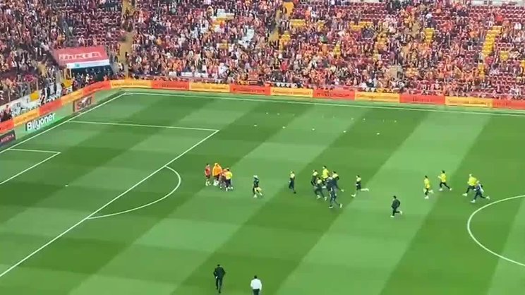 Süper Lig'in 37'nci haftasındaki Galatasaray - Fenerbahçe derbisi öncesi saha içinde iki takım oyuncuları arasında gerginlik yaşandı. Fenerbahçeli futbolcular zemin kontrolü için maç öncesi sahaya çıkıp yarı alanda beklerken, diğer yarı alanda bulunan Mert Hakan Yandaş ile Galatasaraylı oyuncu Kerem Aktürkoğlu arasında sözlü atışma oldu. Galatasaraylı futbolcu Abdülkerim Bardakcı'nın da tartışmaya dahil olmasıyla gerginlik büyüdü. İtiş kakışın yaşandığı gerginlik teknik ekip ve diğer futbolcuların araya girmesiyle son buldu. İşte olayların başlangıç anı...