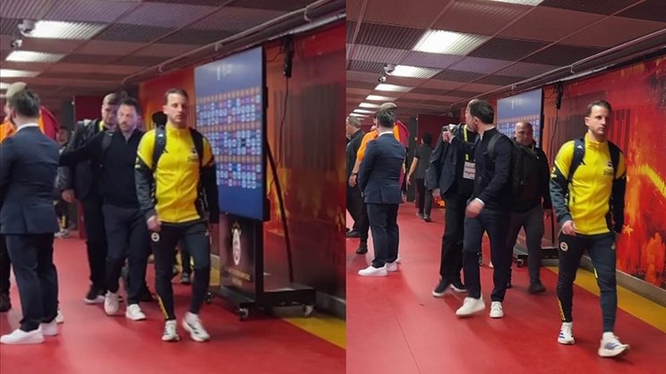 Galatasaray ile Fenerbahçe arasında oynanan ve sarı kırmızılıların 3-0 kazandığı derbi sonrası Tedesco stattan ayrılırken koridorda Osimhen'i tebrik etti.
