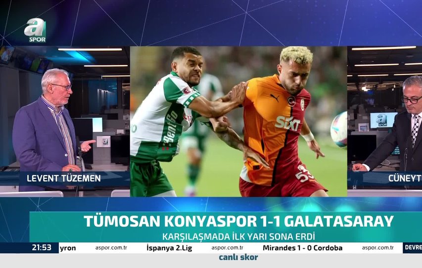 Trendyol Süper Lig'in 2. haftasında Galatasaray'ın, Konyaspor ile karşı karşıya geldiği mücadelenin devre arasında ünlü yorumcu Levent Tüzemen dikkat çeken ifadelere yer verdi. Tüzemen'in özellikle sarı-kırmızılıların yeni transferi Gabriel Sara hakkında, "Galatasaray'ın pahalı bir transferiyse takıma adapte olması lazım. İyi bir ayağı var ve daha fazla rol üstlenmesi gerekiyor. Şu anda yarım oynuyor." sözleri gündem oldu.