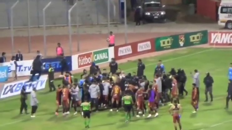Bolivya Kupası çeyrek finalinde Real Oruro ile Blooming arasında oynanan maçın son düdüğü ile iki takım birbirine girdi. Olaylarda her iki takımın oyuncuları ve teknik ekip üyeleri sahadan atılırken tam 17 kırmızı kart kararı verildi. Bolivya Futbol Federasyonu kavgayla ilgili soruşturma başlattı. İşte o anlar...