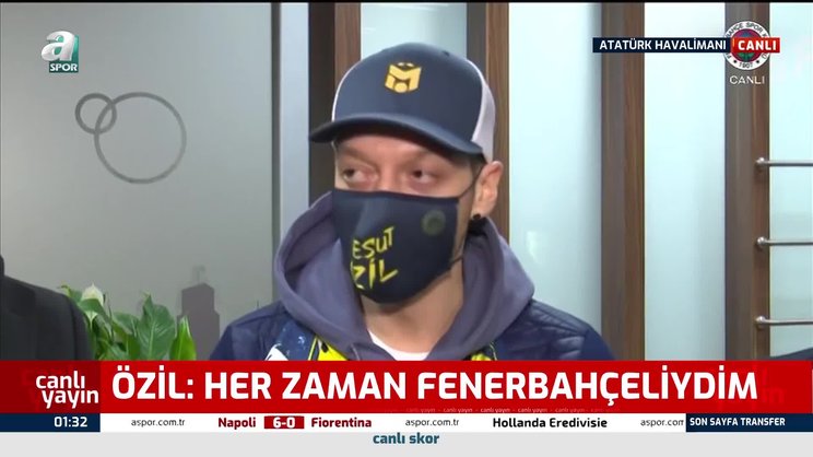 Fenerbahçe'nin flaş transferi Mesut Özil, İstanbul'a geldikten sonra ilk röportajını verdi. Havalimanında kendisini karşılayan Fenerbahçe Sportif Direktörü Emre Belözoğlu'yla ayaküstü sohbet eden Mesut "Yol güzel geçti. Güzel bir ayrılık oldu. Arkadaşlarla vedalaştık" dedi. FB TV'ye de açıklamalarda bulunan yıldız oyuncu "Çok heyecanlıyım. Ben her zaman Fenerbahçeliydim. Bir rüya benim için de gerçekleşiyor artık, tek Fenerbahçe için değil. Formamı giymeye, takım arkadaşlarımla inşallah başarılı oluruz. Heyecandan bir şey diyemiyorum. Her şey çok güzel olacak" ifadelerini kullandı.