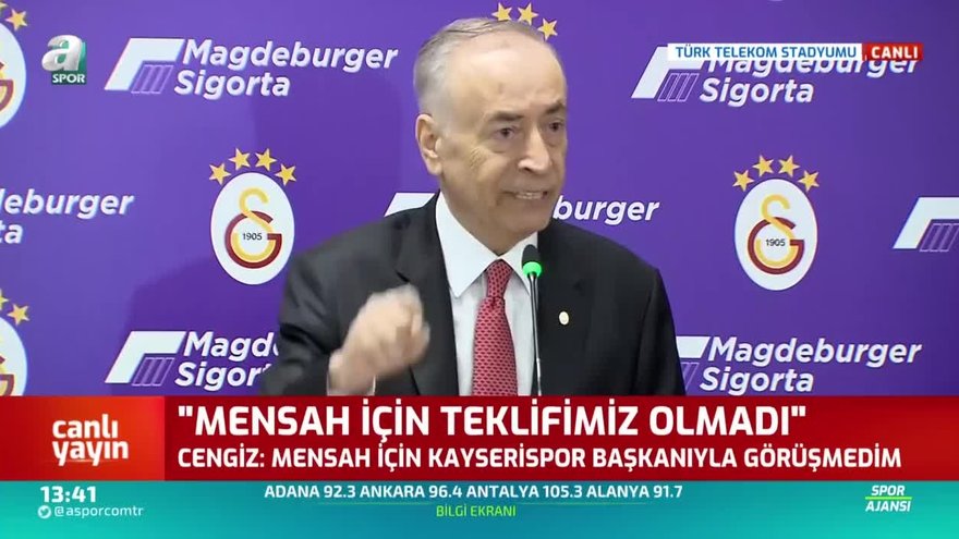 Galatasaray Başkanı Mustafa Cengiz sponsorluk anlaşması için düzenlenen basın toplantısında Bernard Mensah ve Mehmet Ekici transferiyle ilgili konuşurken, Sofiane Feghouli'nin nisan ayından itibaren maaş alamadığı iddialarını yalanladı.