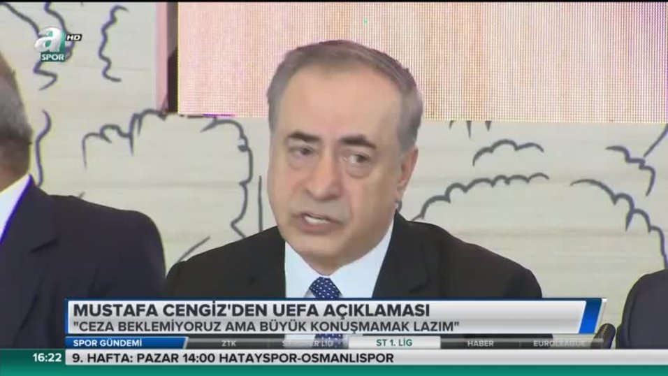 Galatasaray Başkanı Mustafa Cengiz, UEFA'nın yeni gözden geçirme kararı için "Ceza beklemiyoruz ama büyük konuşmamak lazım. ne olacağını göreceğiz" dedi.