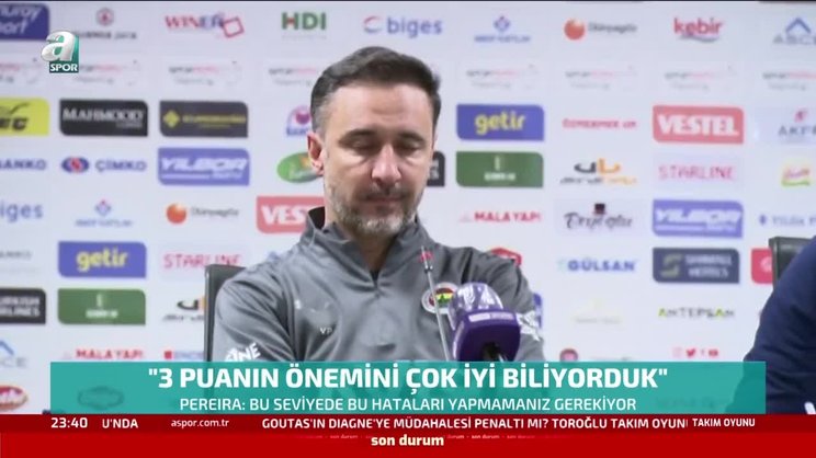 Süper Lig'in 16. haftasında Fenerbahçe deplasmanda Gaziantep karşısında 3-2 mağlup oldu. Maçtan sonra basın toplantısı düzenleyen Pereira'ya istifa hakkında bir soru geldi. Bu soruya Fenerbahçe Teknik Direktörü Vitor Pereira, "Bu konuyu gazetecilerle birlikte konuşmayacağım." dedi.