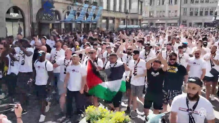 UEFA Şampiyonlar Ligi finalinde Inter ile karşılaşacak PSG'de taraftarlar, Almanya'da oynanacak maç öncesi Münih sokaklarında Filistin bayraklarıyla yürüyerek İsrail'in Gazze'ye yönelik saldırılarını kınadı.