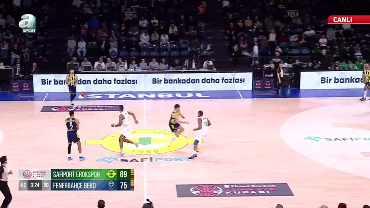 Ziraat Bankası Türkiye Kupası çeyrek finalinde Safiport Erokspor- Fenerbahçe Beko maçının 4. periyodu 76-83'lük skorla Fenerbahçe Beko’nun lehine sonuçlandı. İşte mücadelenin 4. çeyreği...
