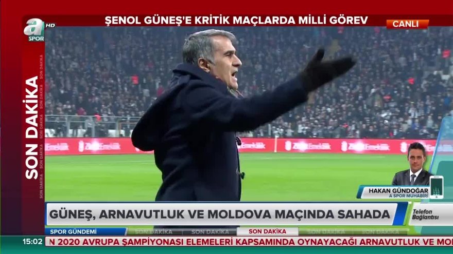 Şenol Güneş, Türkiye'nin Arnavutluk ve Moldova maçlarında Milli Takım'ın başında olacak. A Spor muhabiri Hakan Gündoğar detayları aktardı. Gündoğar, " Şenol Güneş'in Beşiktaş'taki görevi de devam edecek. Güneş, Ay-Yıldızlıların, Arnavutluk ve Moldova maçlarında sahada olacak. "TFF, acil gördüğü durumlarda seçtiği teknik adamı, kulübüyle ilişkisini kesmeden göreve getirebilir" diye madde var." ifadelerini kullandı.