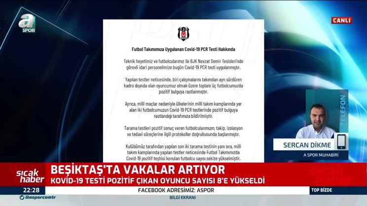 A Spor muhabiri Sercan Dikme, Beşiktaş'ta açıklanan corona virüsü vakalarının ardından açıklamalarda bulundu. Dikme, "Beşiktaş'ta vaka sayıları ilerleyen günlerde daha da artabilir" dedi.