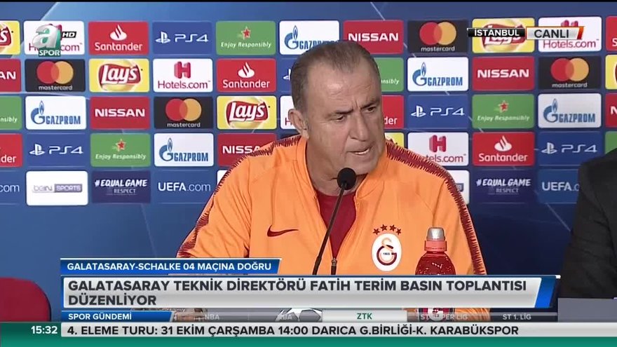 Galatasaray Teknik Direktörü Fatih Terim, yarın Şampiyonlar Ligi'nde oynayacakları Schalke 04 maçı öncesi basın mensuplarının sorularını yanıtladı.